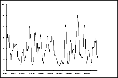 At first site it appears that there is no evidence for the onset of steady state conditions in Fig. 11.5 but if we construct a moving average for the results a different picture begins to emerges.