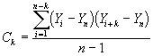 To apply the method we need to check the assumption that the observations are covariance stationary. We can achieve this by calculating what is known as the correlation at a lag of k :