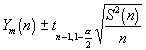 In other words Ym has an absolute error of at most b with a probability of 1 - a . Suppose we have constructed a confidence interval for m based on n replications then if we assume that the estimate S2(n) of the population variance will not change appreciably as the number of replications increase an approximate estimate of the number of replications n(b ) required to reduce the absolute error to b or less is given by :