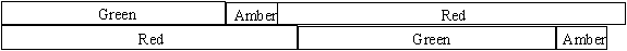 A traffic light system is green for 5 minutes, amber for 30 seconds and then red for 5.5 minutes.