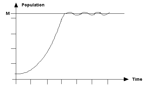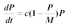 We shall assume that the time derivative of the population is approximately zero when the population reaches rough stability around the value P = M. This gives the equation