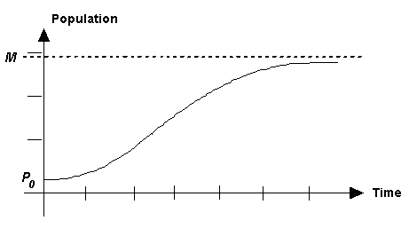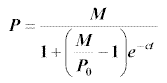 gives P = M. Graphing the function gives a curve similar to the one shown