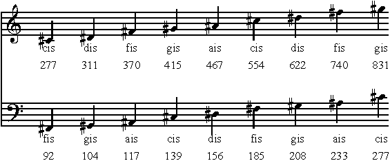 Igale noodile vastab sagedus vastavalt järgnevale joonisele: